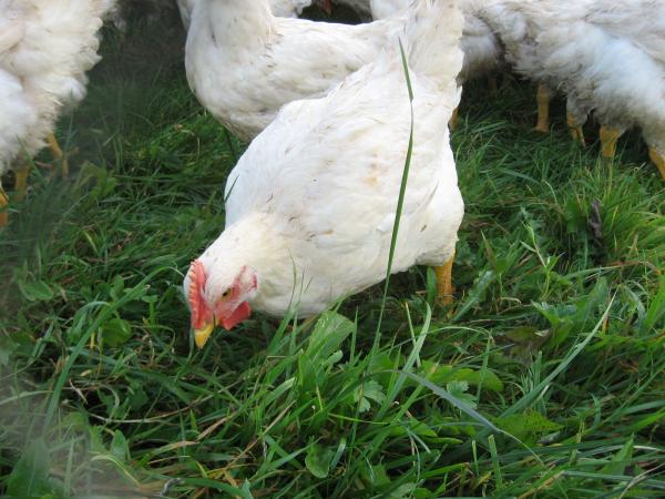 Graaskippenvlees, of buitenkippenvlees, dat wij verkopen is afkomstig van boer Holtslag uit Hall.