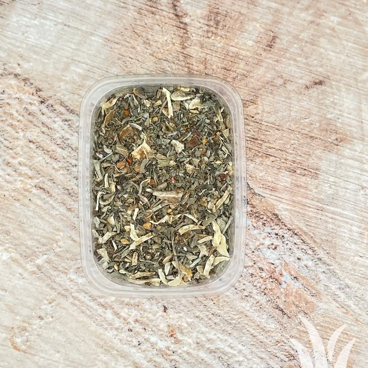 Eigen mengsel zonder zout van Puur Natuur specerijen. Specerijen zijn afkomstig van het Blauwe Huis & Vehgro. Inhoud 30 gram.