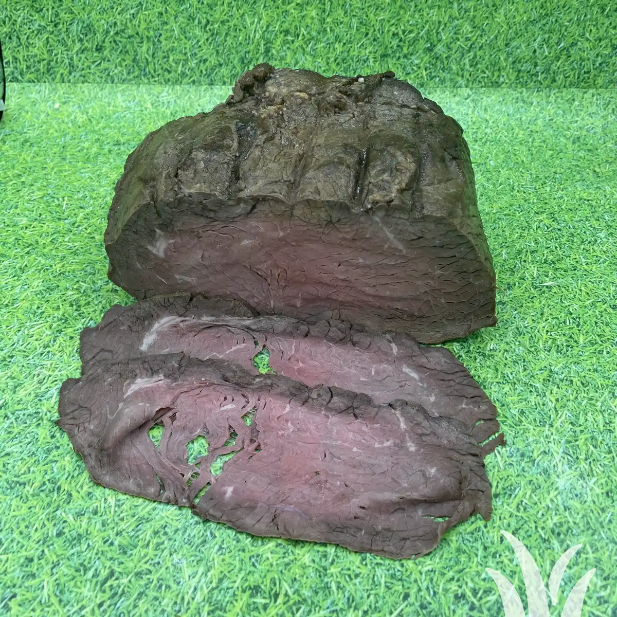 Herefords Graasrund. Gebraden in de oven;ham gemaakt van het vlees van de rosbief.Ook geschikt om iets in te rollen. Bevat alleen zeezout.