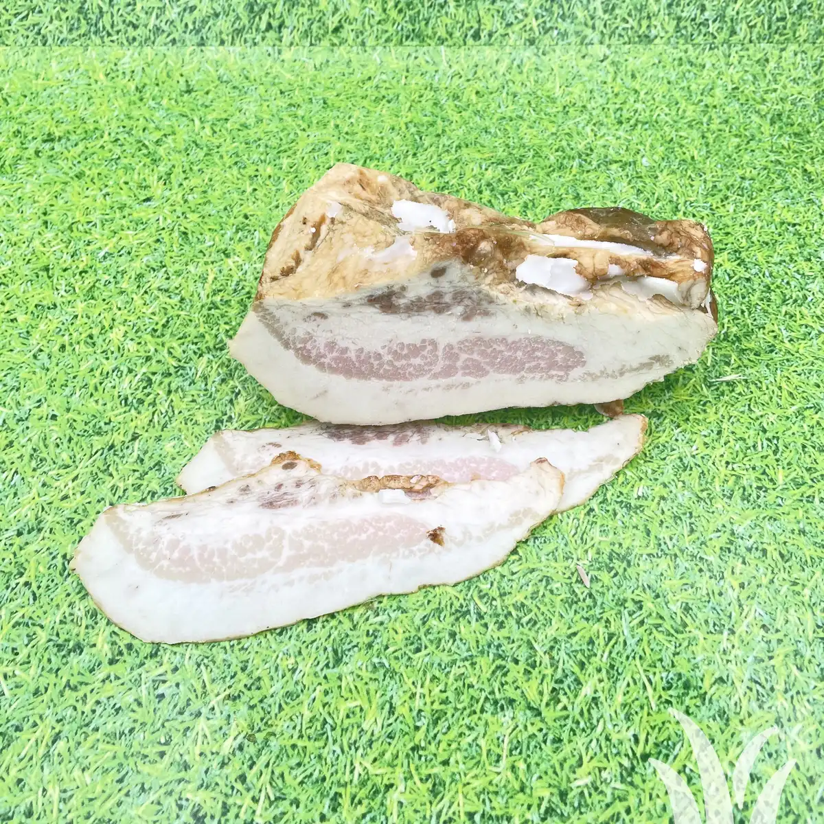 Gepekeld en gerookt spek lvan Livarvarkensvlees langzaam gegaard in de oven op 75 C.
